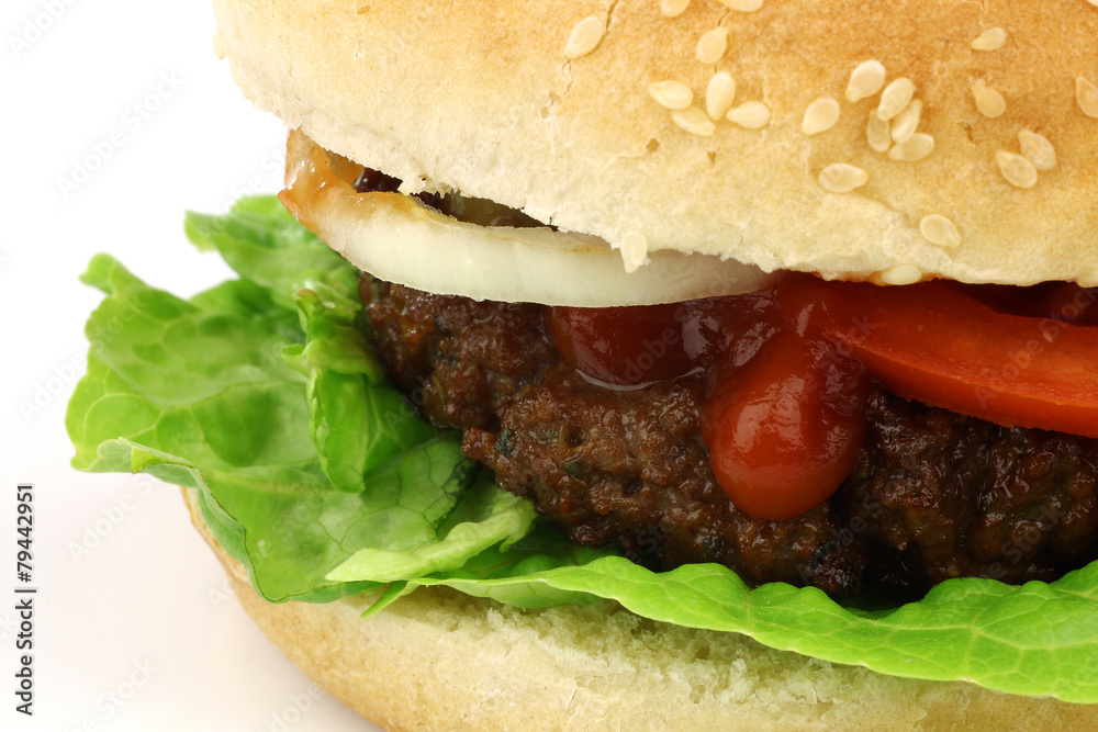fresh homemade hamburger with lettuce,tomatoes, onions and sauce