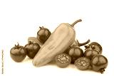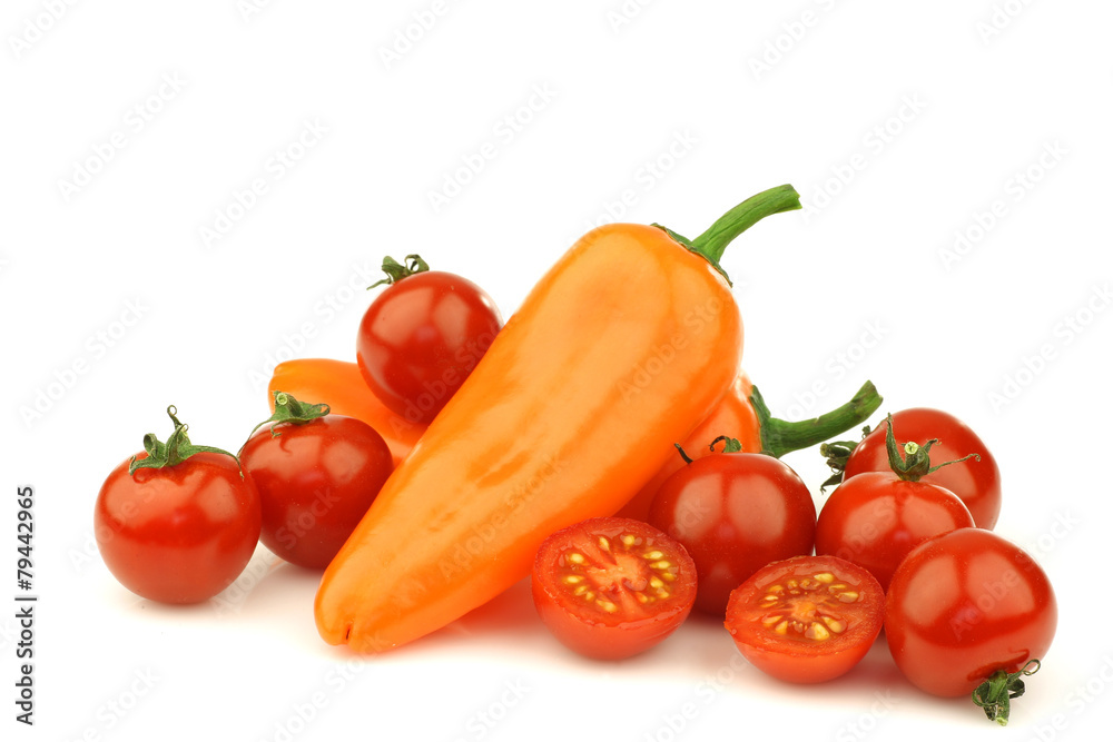 fresh cherry tomatoes and two orange peppers (capsicum)