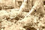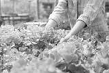 Organic farming, salad farm. Farmers harvest salad vegetables into wooden boxes in rainy. Hydroponics vegetable grow naturally. greenhouse garden, Ecological Biological, Healthy, Vegetarian, ecology
