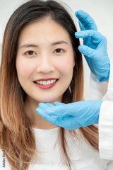 beauty asian smile and happy after surgery, Cosmetic surgery, skin whitening injection, filler injection, Skin reface, beautiful Asian girls receive beauty treatments at beauty clinic, skincare