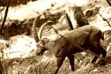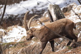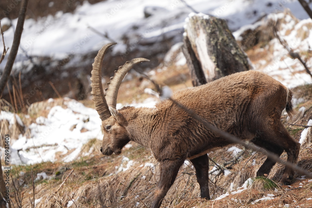 herd of steinbock capricorns grazing in Pontresina, Graubuenden, during summer. Ibex herd.