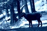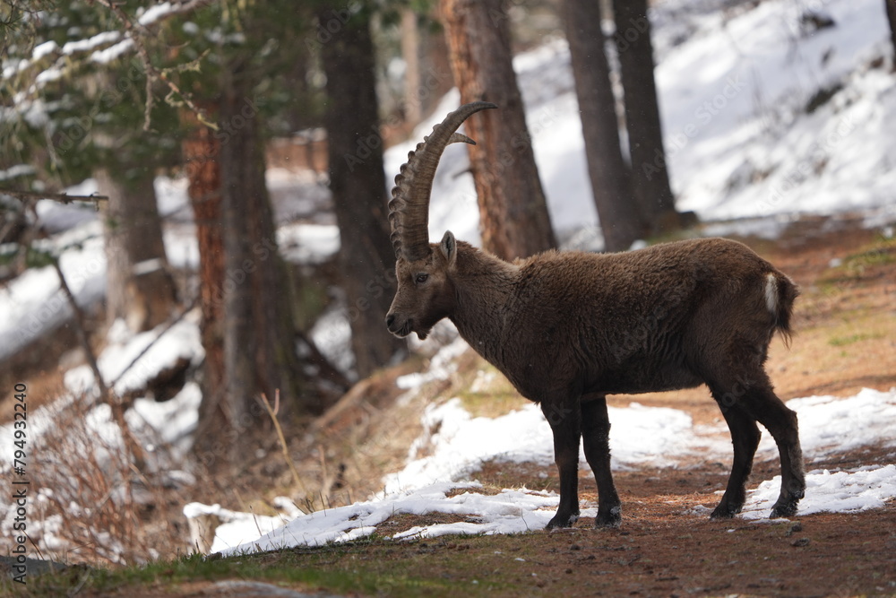 mountain goat on a meadow in summer ibex capricorn pontresina grisons switzerland graubuenden