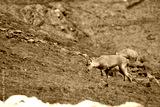 herd of steinbock capricorns grazing in Pontresina, Graubuenden, during summer. Ibex herd.
