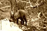 herd of steinbock capricorns grazing in Pontresina, Graubuenden, during summer. Ibex herd.