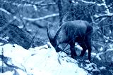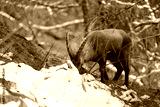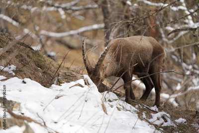 herd of steinbock capricorns grazing in Pontresina, Graubuenden, during summer. Ibex herd.
