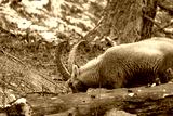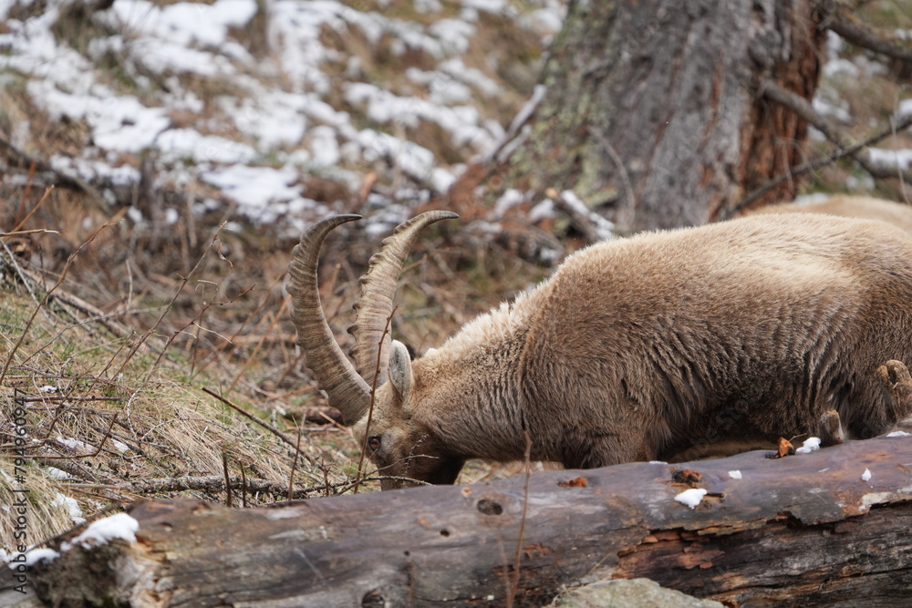 ibex, steinbock, mountain goat on a rock in pontresina graubuenden switzerland ch swis alps