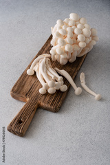 Fresh white shimeji mushrooms on gray background