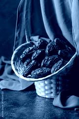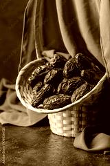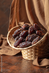 Dates in a old basket on a brown background.