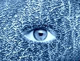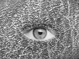 Auge mit Grüner Pupillein grünem Camouflage-Hintergrund