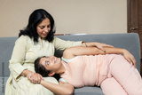 Indian mother Giving Confidence support to young teen daughter with holding her hand ,Mother supporting daughter in her menstrual days