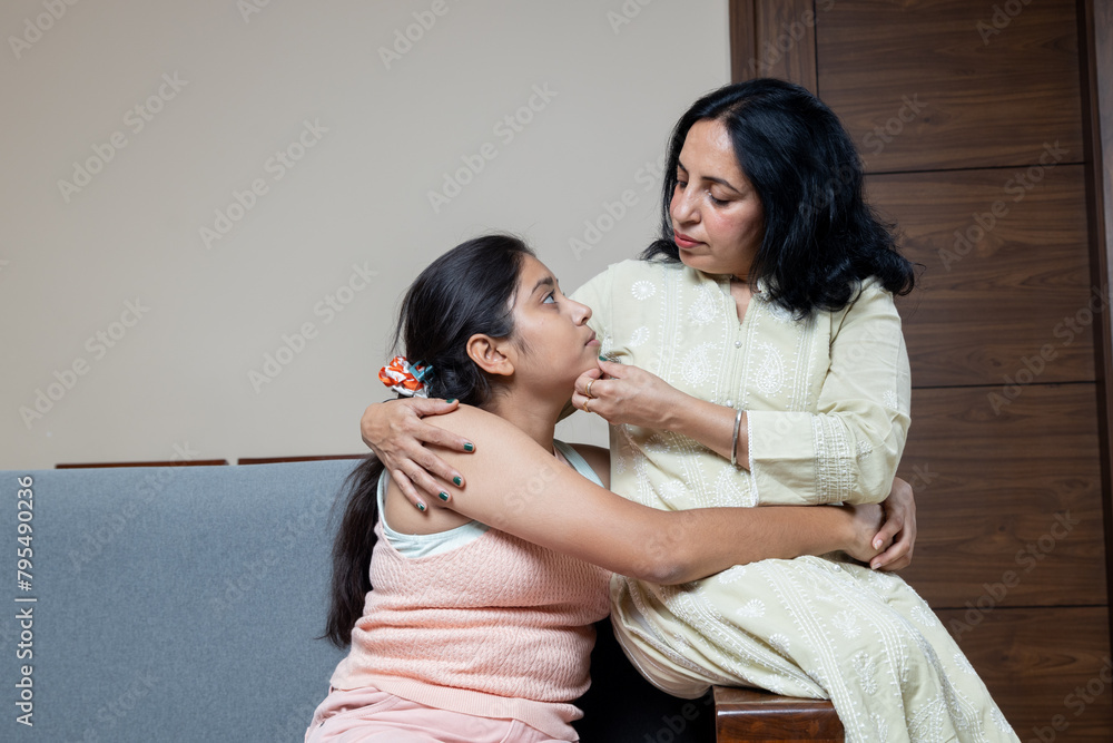 Indian mother supporting her teen daughter in her Problem and health issue,Supporting mother for her teenage daughter