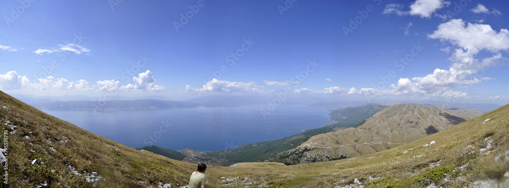 A panoramic view of the Lake Ohrid from near Magaro peak on Galichica mountain.