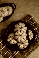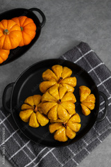 Pumpkin Shaped Bread. Autumn, Styled Composition with Neutral Colours.