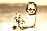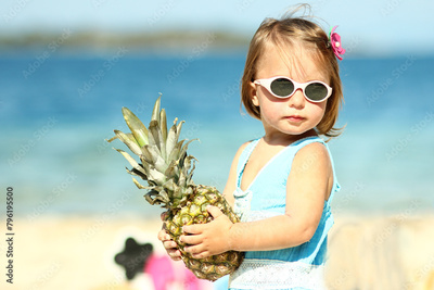 A Pineapple in the hands of a man by the sea in nature on a journey background