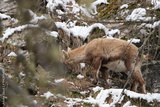 ibex, steinbock, mountain goat on a rock in pontresina graubuenden switzerland ch swis alps