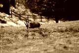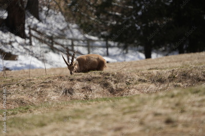 herd of steinbock capricorns grazing in Pontresina, Graubuenden, during summer. Ibex herd.