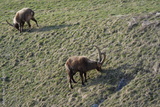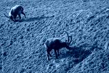 herd of steinbock capricorns grazing in Pontresina, Graubuenden, during summer. Ibex herd.