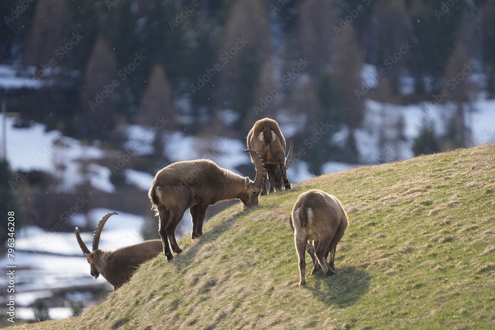 mountain goat on a meadow in summer ibex capricorn pontresina grissons switzerland graubuenden