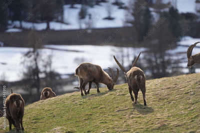 mountain goat on a meadow in summer ibex capricorn pontresina grissons switzerland graubuenden