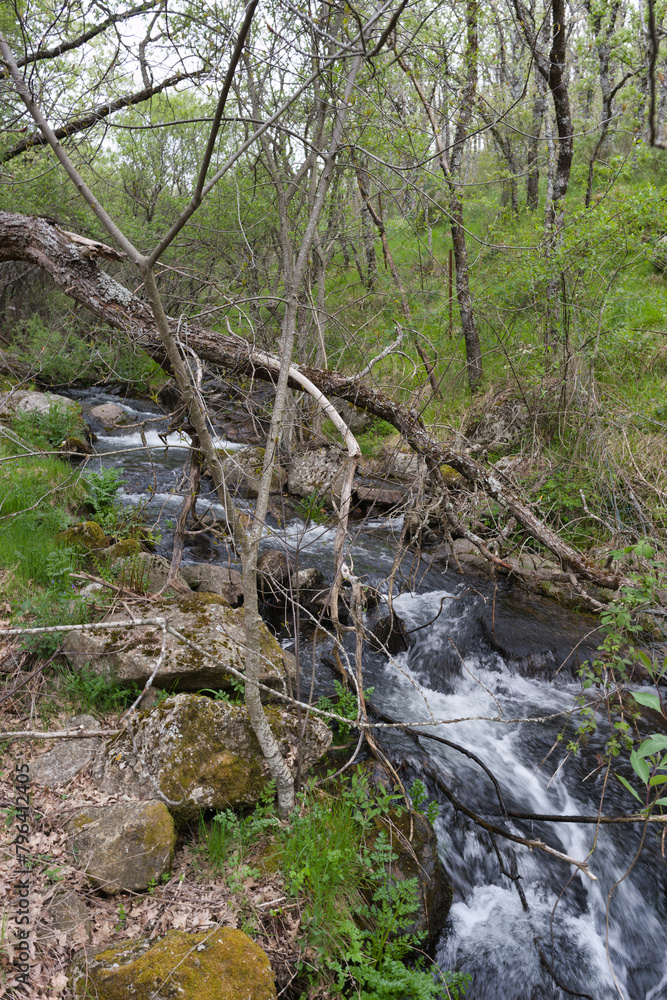 view of a mountain stream in spring in the sierra de guadarrama mountains