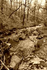 view of a mountain stream in spring in the sierra de guadarrama mountains