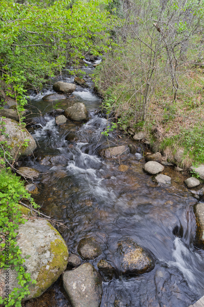 view of a mountain stream in spring in the sierra de guadarrama mountains