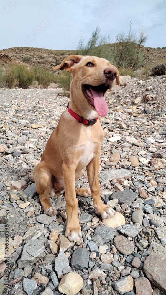 cute little puppy on a walk in nature