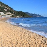 Pelekas Beach, Corfu. Tourist attractions in Greece. Greek island.