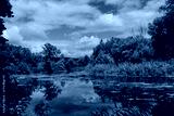 summer landscape of a river against a background of blue sky with white clouds