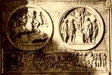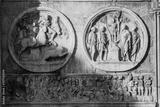 Rome, Italy. Details Of Arch Of Constantine. Bas-relief On Facade Of Triumphal Arch.
