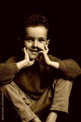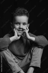 Portrait of a happy smiling stylish white caucasian child boy kid preschooler a chair
