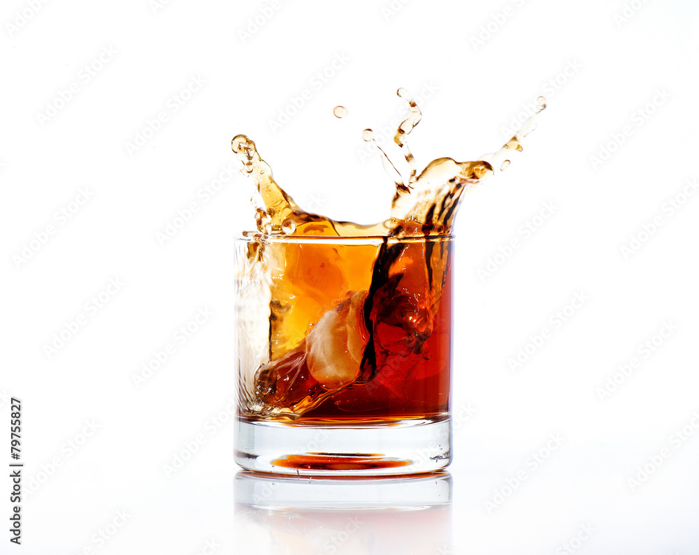 splash of cola in glass isolated on white
