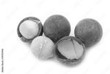 Macadamia nuts (Macadamia tetraphylla) and some peeled ones