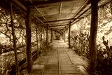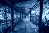 Tree tunnel in rubber plantation, Thailand. Way through garden park in summer season. Nature landscape background