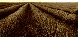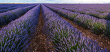 Lavender field in blossom. Rows of lavender bushes stretching to the skyline. Brihuega, Spain.