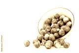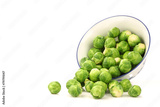 Brussel sprouts in a decorated bowl on a white backgrou