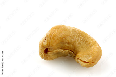 a fresh cashew nut on a white background