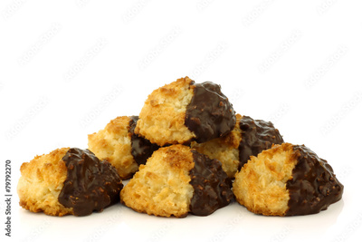 freshly baked cocos and chocolate cookies on a white background