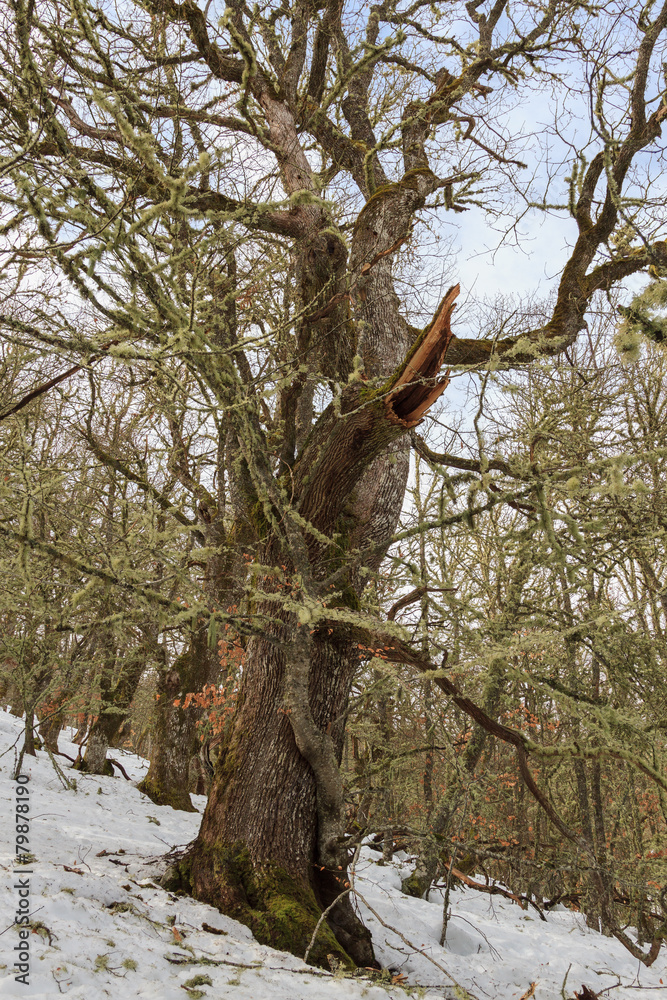 Roble de gran tamaño. Quercus. Sierra de Mampodre, Boñar, León.