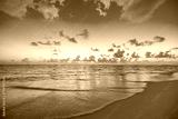 Closeup sea waves beach and colorful sunset sky. Summertime landscape. Empty tropical beach and seascape reflections. Orange golden sunset sky soft sand calm, tranquil relaxing sunlight summer pattern