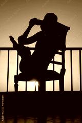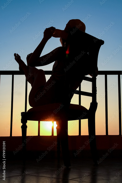 Silhouette of a girl on a chair on a nature background