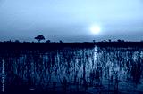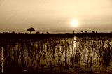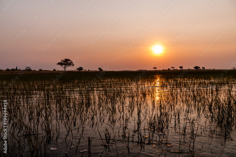 Telephoto shot of a beautiful sunset in the Okavango Delta in Botswana.