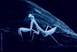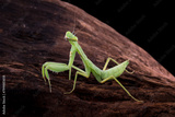 The praying mantis on wood, praying mantis on branch with black background, Green Praying Mantis