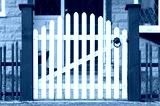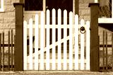 picket fence gate at the front of a home