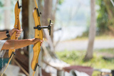 wooden bow aiming straight