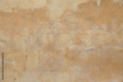 Old rough yellow ochre colored cracked painted plaster wall texture. Shabby earth coloured grunge texture, building facade. Closeup of historical house detail. Faded stained beige backdrop.