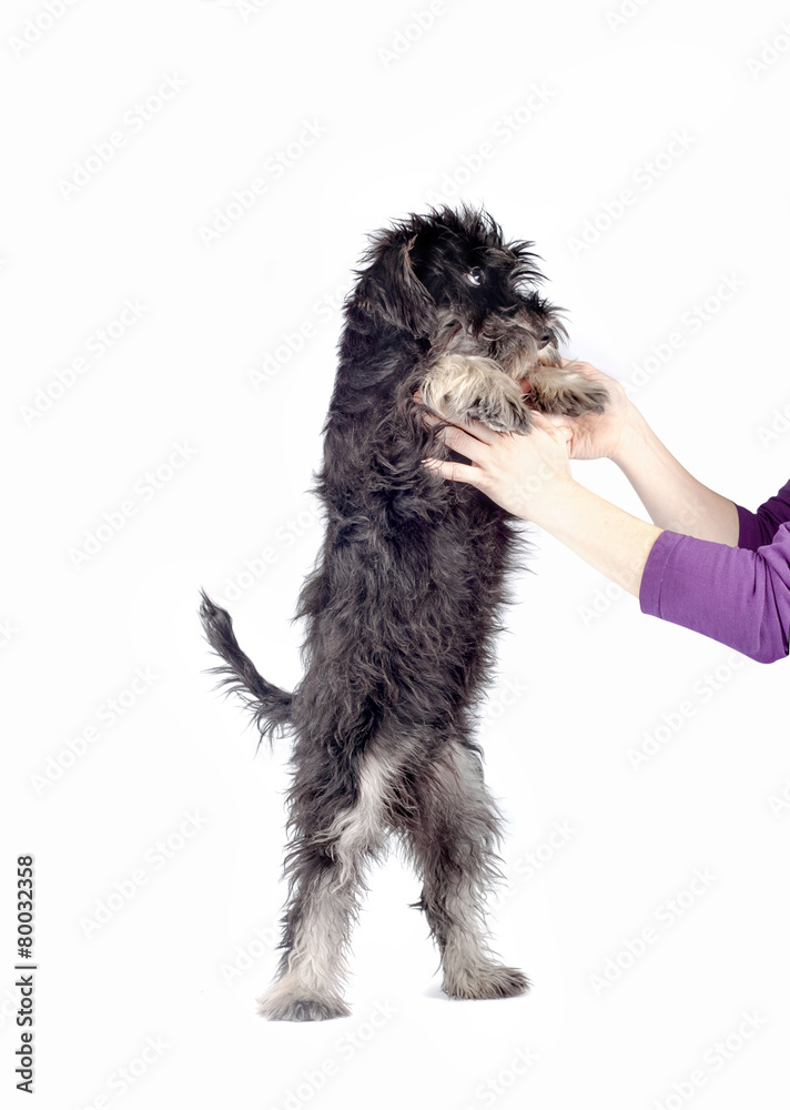 zwergschnauzer puppy in hands