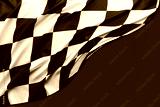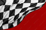 Checkered black and white racing flag on red background