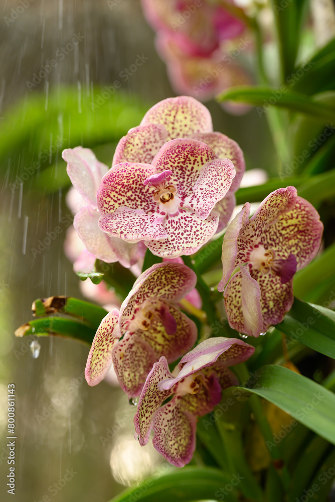 Beautiful Pink yellow Vanda orchid flower blossom in Thailand