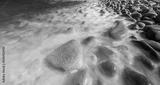 Close-up of pebble beach. Long exposure shots. Black and white.